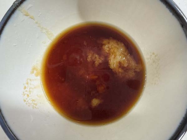 酒、醤油、砂糖、おろしニンニクをいれ調味料を作っておきます。